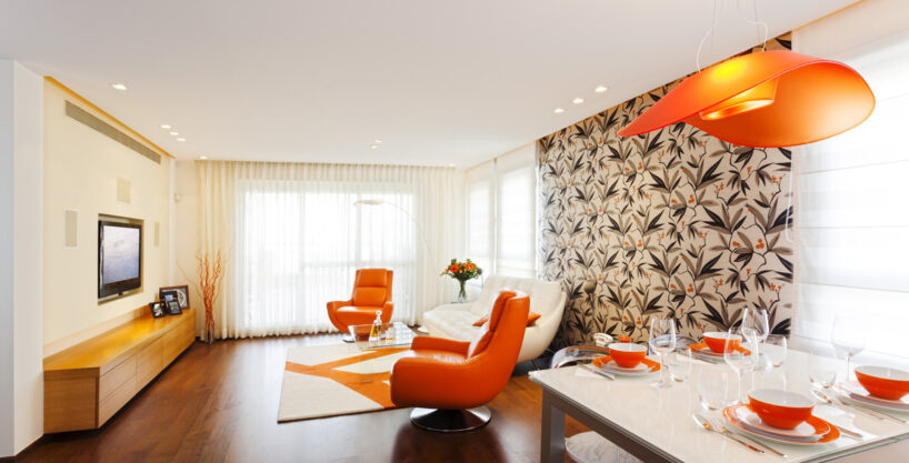 Un edificio de cuatro pisos con un hermoso paisaje y…